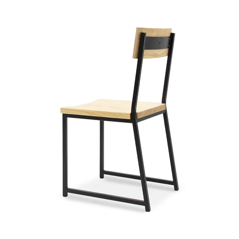 China commercial grade industrial restaurant chairs with concave wooden seat, GA5201C-45STW style wood seat restaurant metal chair will be a good choice. It is made of metal frame and concave solid wood seat and back. This industrial wood seat restaurant metal chair deserves to have a great dining experience at your venue. It features a classic looking black frame that supports the solid wood seat and back. The sturdy metal base has good weight bearing capacity which ensure the quality. The metal and wood combination which lends it a n industrial sense look and bring a perfect side and front view.